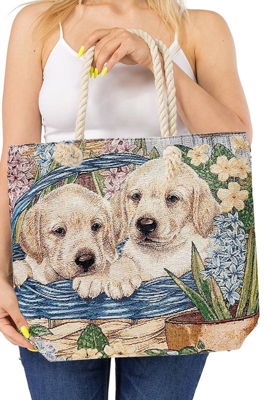 Lab Pups Duo Woven Tapestry Burlap Canvas Tote Bag